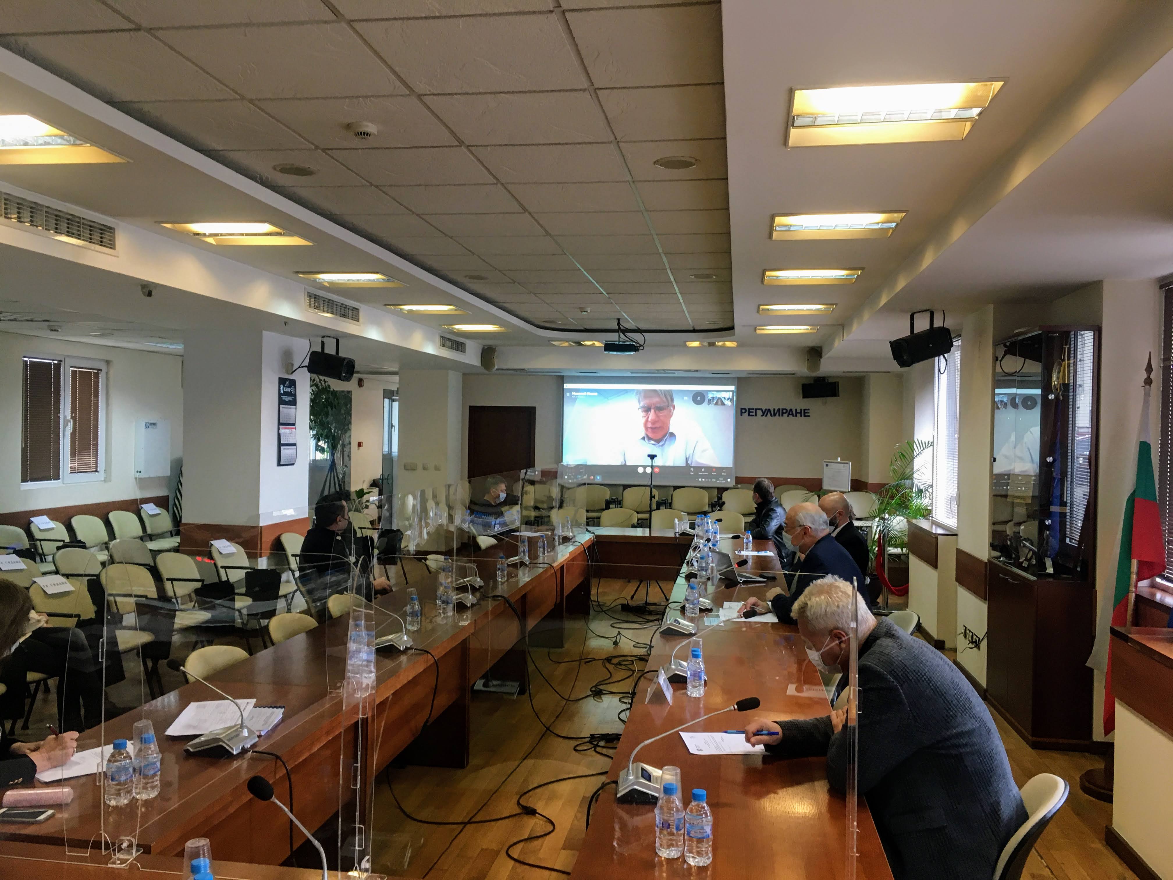 Комисията за енергийно и водно регулиране проведе обществено обсъждане по проект на решение за определяне на пределна цена за сключване на сделки на пазара на балансираща енергия. Правомощието на Комисията ежегодно да определя пределна цена за сделки на пазара на балансираща енергия произтича от разпоредбите на чл. 21, ал. 1 от Закона за енергетиката. В съответствие с изискванията на нормативната уредба проектът беше публикуван на интернет страницата на КЕВР. Официални покани за участие в общественото обсъждане регулаторът изпрати до заинтересованите лица по смисъла на чл. 14, ал. 2 от Закона за енергетиката. Представители на ЕСО ЕАД, НЕК ЕАД и „Аку Енерджи България“ участваха дистанционно в обсъждането чрез системата Skype.