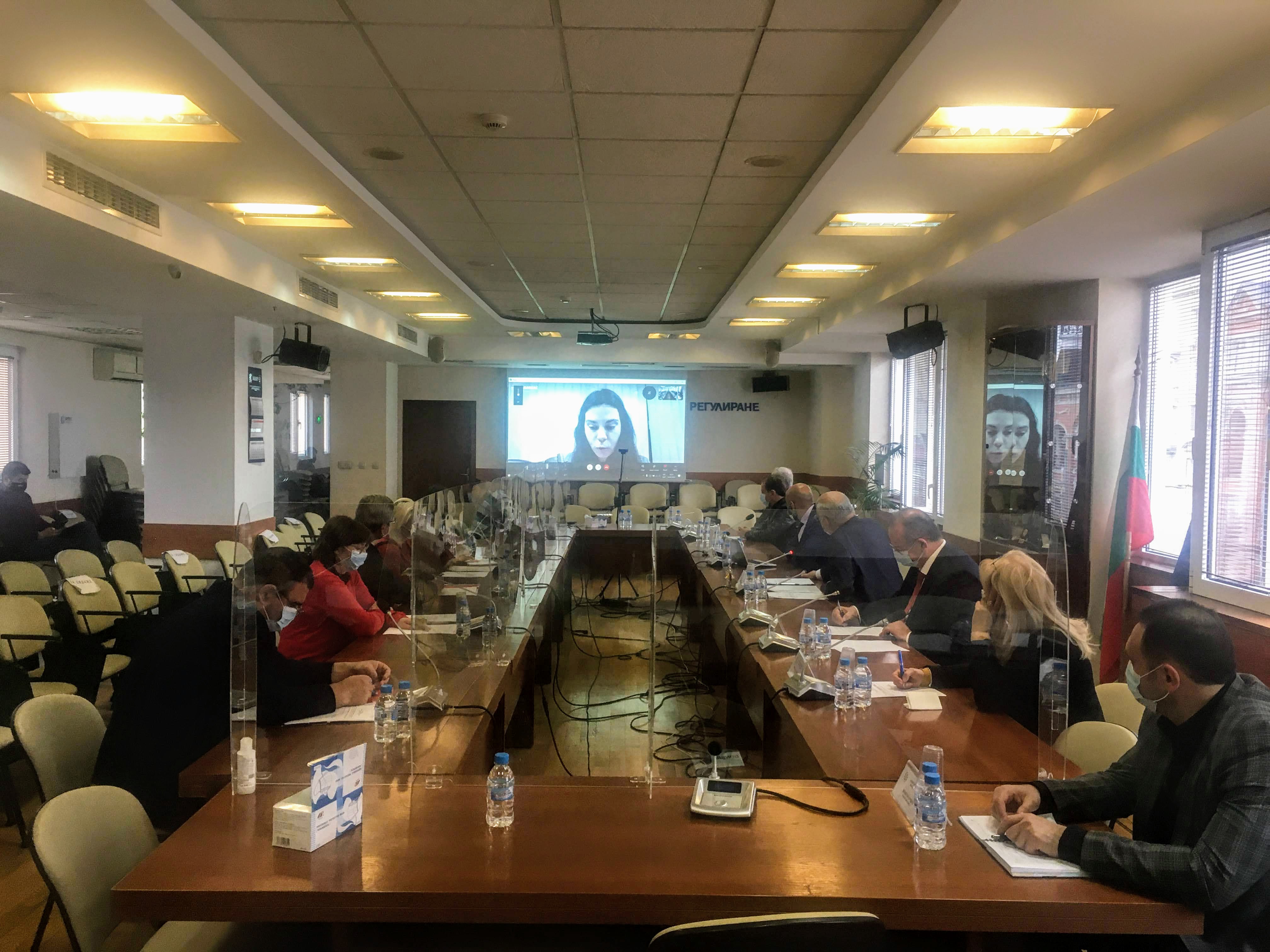 Комисията за енергийно и водно регулиране /КЕВР/ проведе обществени обсъждания на проект на Методика за определяне на санкциите и глобите, налагани по чл. 224г от Закона за енергетиката /Методиката/, както и на проект на Правила за достъп до преписки, свързани с установяване на нарушения по чл. 3 и чл. 5 от Регламент (ЕС) № 1227/2011 /REMIT, Регламента/, използване и съхраняване на документи, представляващи производствена, търговска или друга защитена от закон тайна /Правилата/. В съответствие с изискванията на нормативната уредба докладите на работните групи и проектите на нормативни актове бяха публикувани на интернет страницата на КЕВР. Проектът на Методика за определяне на санкциите и глобите, налагани по чл. 224г от Закона за енергетиката беше публикуван на Портала за обществени консултации. В съответствие с решение на Комисията, продиктувано от епидемичната обстановка, обсъжданията бяха проведени от разстояние, чрез програмата за комуникации Skype. За участие в тях Комисията отправи покани до заинтересовани лица по смисъла на чл. 14, ал. 2 от Закона за енергетиката - държавни органи, браншови организации, енергийни предприятия, клиенти, пряко свързани с изготвения проект, и организации на потребители. В обществените обсъждания от разстояние участваха представители на Българската асоциация Природен газ, „Булгартрансгаз“ ЕАД, „Булгаргаз“ ЕАД и Асоциация свободен енергиен пазар. Обществените обсъждания бяха излъчени онлайн на интернет страницата на Комисията.
